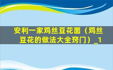 安利一家鸡丝豆花面(鸡丝豆花的做法大全窍门)