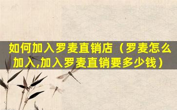 如何加入罗麦直销店(罗麦怎么加入,加入罗麦直销要多少钱)
