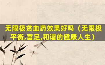 无限极贫血药效果好吗(无限极平衡,富足,和谐的健康人生)