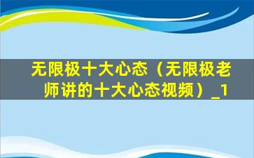 无限极老师讲的十大心态视频是一套强大的工具,可以帮助个人培养积极的心态,应对生活中的挑战。这些视频基于以下十大心态原则: