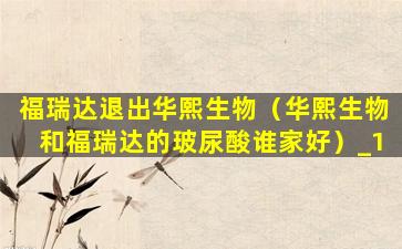 福瑞达退出华熙生物(华熙生物和福瑞达的玻尿酸谁家好)