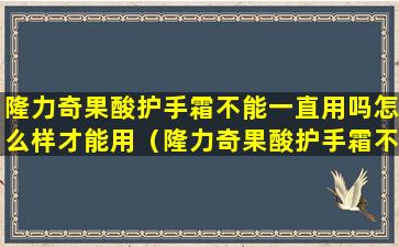 隆力奇果酸护手霜不能一直用吗怎么样才能用(隆力奇果酸护手霜不能一直用吗怎么样才能用呢)