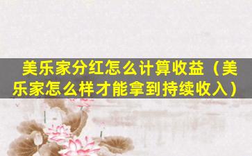 美乐家分红怎么计算收益(美乐家怎么样才能拿到持续收入)