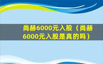尚赫6000元入股(尚赫6000元入股是真的吗)