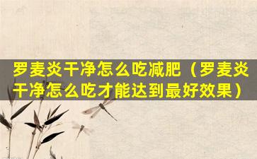 罗麦炎干净怎么吃减肥(罗麦炎干净怎么吃才能达到最好效果)