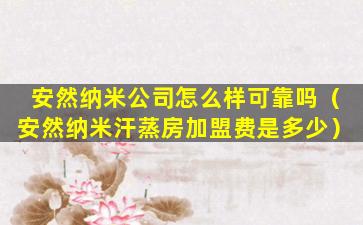 安然纳米公司怎么样可靠吗(安然纳米汗蒸房加盟费是多少)