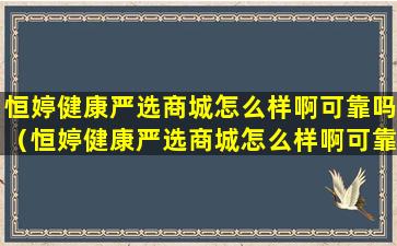 恒婷健康严选商城怎么样啊可靠吗(恒婷健康严选商城怎么样啊可靠吗安全吗)