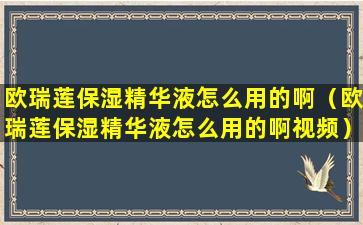 欧瑞莲保湿精华液怎么用的啊(欧瑞莲保湿精华液怎么用的啊视频)