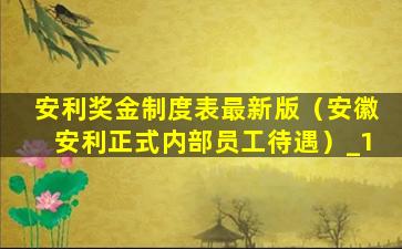 安利奖金制度表最新版(安徽安利正式内部员工待遇)