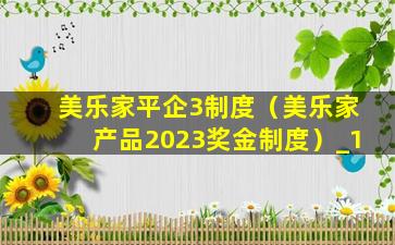 美乐家平企3制度(美乐家产品2023奖金制度)