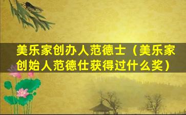 美乐家创办人范德士(美乐家创始人范德仕获得过什么奖)
