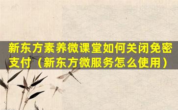 新东方素养微课堂如何关闭免密支付(新东方微服务怎么使用)