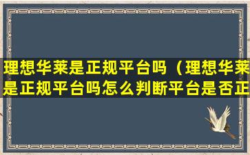 理想华莱是正规平台吗(理想华莱是正规平台吗 怎么判断平台是否正规)