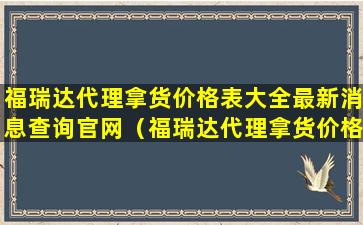 福瑞达代理拿货价格表大全最新消息查询官网(福瑞达代理拿货价格表大全最新消息查询官网电话)