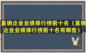 直销企业业绩排行榜前十名(直销企业业绩排行榜前十名有哪些)