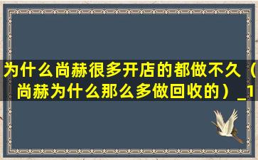 为什么尚赫很多开店的都做不久(尚赫为什么那么多做回收的)