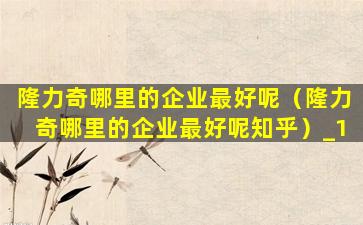 2、隆力奇哪里的企业最好呢知乎