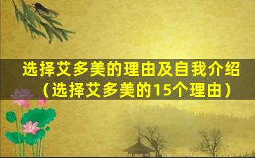 选择艾多美的理由及自我介绍(选择艾多美的15个理由)