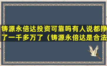 铸源永倍达投资可靠吗有人说都挣了一千多万了(铸源永倍达是合法的直销吗)