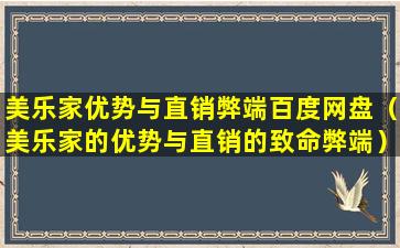 美乐家优势与直销弊端百度网盘(美乐家的优势与直销的致命弊端)