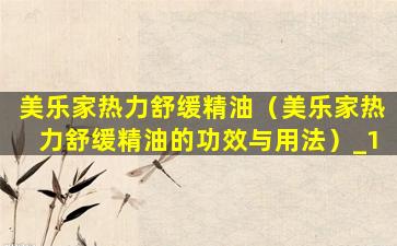 美乐家热力舒缓精油(美乐家热力舒缓精油的功效与用法)