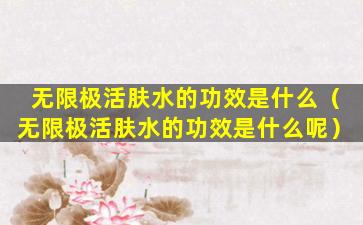 无限极活肤水的功效是什么(无限极活肤水的功效是什么呢)