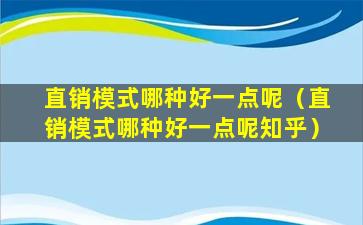 直销模式哪种好一点呢(直销模式哪种好一点呢知乎)