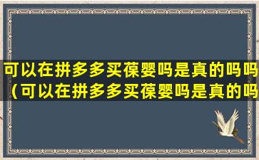 可以在拼多多买葆婴吗是真的吗吗(可以在拼多多买葆婴吗是真的吗吗安全吗)