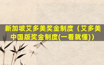 3、新加坡艾多美奖金制度是多少