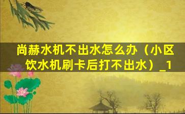 尚赫水机不出水怎么办(小区饮水机刷卡后打不出水)