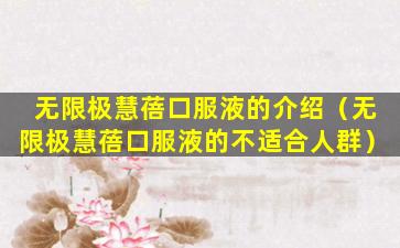 无限极慧蓓口服液的介绍(无限极慧蓓口服液的不适合人群)