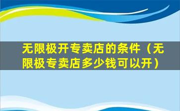 无限极开专卖店的条件(无限极专卖店多少钱可以开)