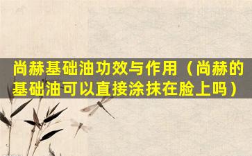 尚赫基础油功效与作用(尚赫的基础油可以直接涂抹在脸上吗)