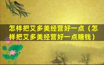 怎样把艾多美经营好一点(怎样把艾多美经营好一点赚钱)