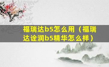 福瑞达b5怎么用(福瑞达诠润b5精华怎么样)