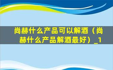 尚赫什么产品可以解酒(尚赫什么产品解酒最好)