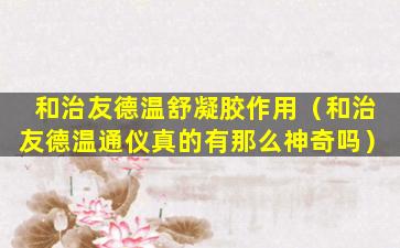 和治友德温舒凝胶作用(和治友德温通仪真的有那么神奇吗)