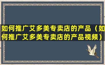 如何推广艾多美专卖店的产品(如何推广艾多美专卖店的产品视频)