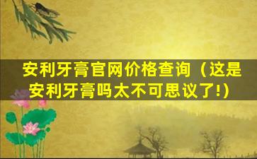 安利牙膏官网价格查询(这是安利牙膏吗太不可思议了!)