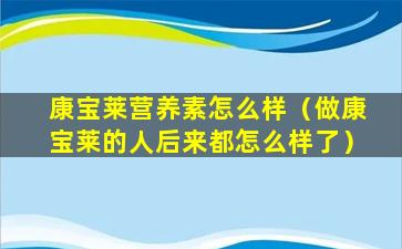 康宝莱营养素怎么样(做康宝莱的人后来都怎么样了)