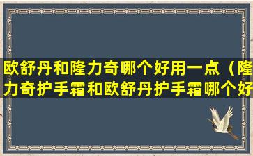 隆力奇护手霜成分丰富,保湿效果好,价格实惠;欧舒丹护手霜质地轻盈,吸收迅速,香味怡人,但价格较高。