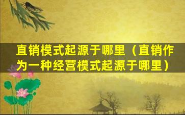 直销模式起源于哪里(直销作为一种经营模式起源于哪里)