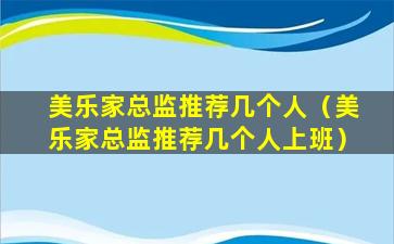 美乐家总监推荐几个人(美乐家总监推荐几个人上班)