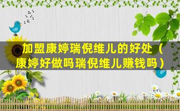 加盟康婷瑞倪维儿的好处(康婷好做吗瑞倪维儿赚钱吗)
