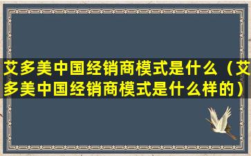 艾多美中国经销商模式是什么(艾多美中国经销商模式是什么样的)