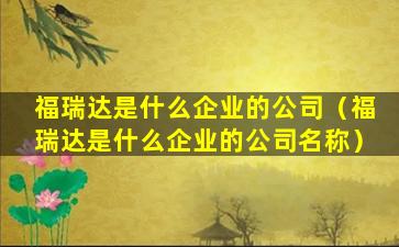 福瑞达是什么企业的公司(福瑞达是什么企业的公司名称)