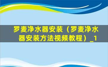 罗麦净水器安装(罗麦净水器安装方法视频教程)