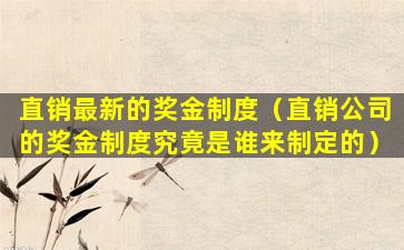 直销最新的奖金制度(直销公司的奖金制度究竟是谁来制定的)