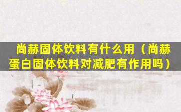 尚赫固体饮料有什么用(尚赫蛋白固体饮料对减肥有作用吗)
