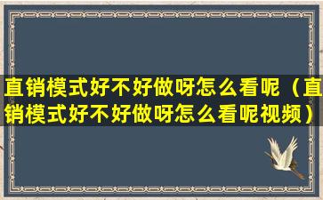 直销模式好不好做呀怎么看呢(直销模式好不好做呀怎么看呢视频)